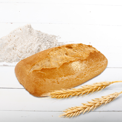 Kleines Weizenbaguette mit zarter Krume und knuspriger Kruste; mit Hartweizengrieß bestreut!